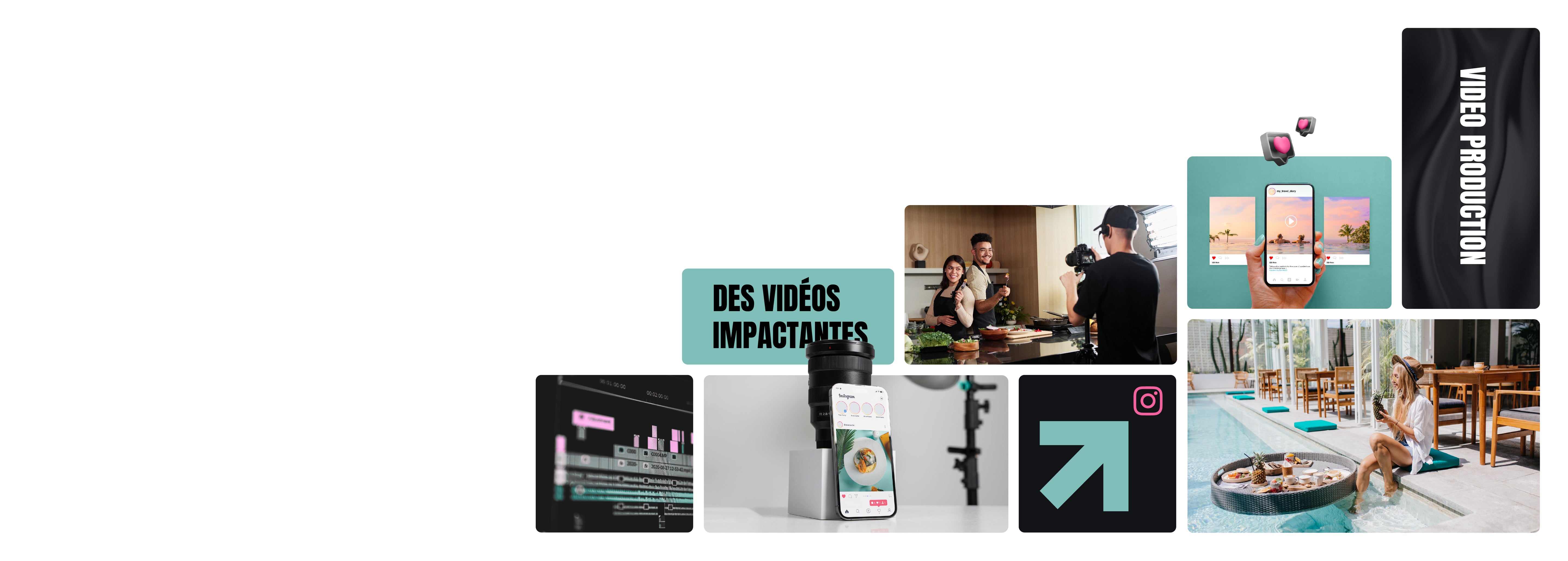 Nous offrons une gamme complète de services de création de contenu, incluant la photographie, la vidéographie, le montage, et la publication régulière de contenu sur vos plateformes en ligne.